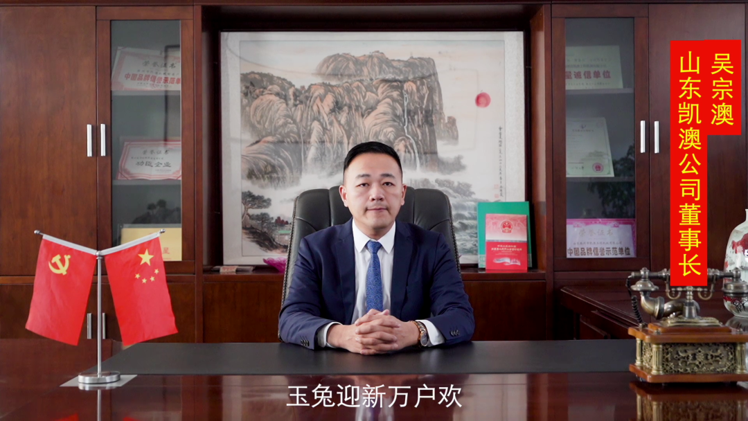 我们告别成绩斐然的 2022年,迎来了充满希望的 2023年,今天我们共迎新春佳节,共谋美好明天。值此新春佳节到来之际,我谨代表山东凯澳公司,向一年来为公司发展付出辛勤努力的全体员工,向长期关心和支持公司发展的各级领导,向与凯澳精诚合作的经销商、供应商,新老客户致以诚挚的问候和美好的祝福!